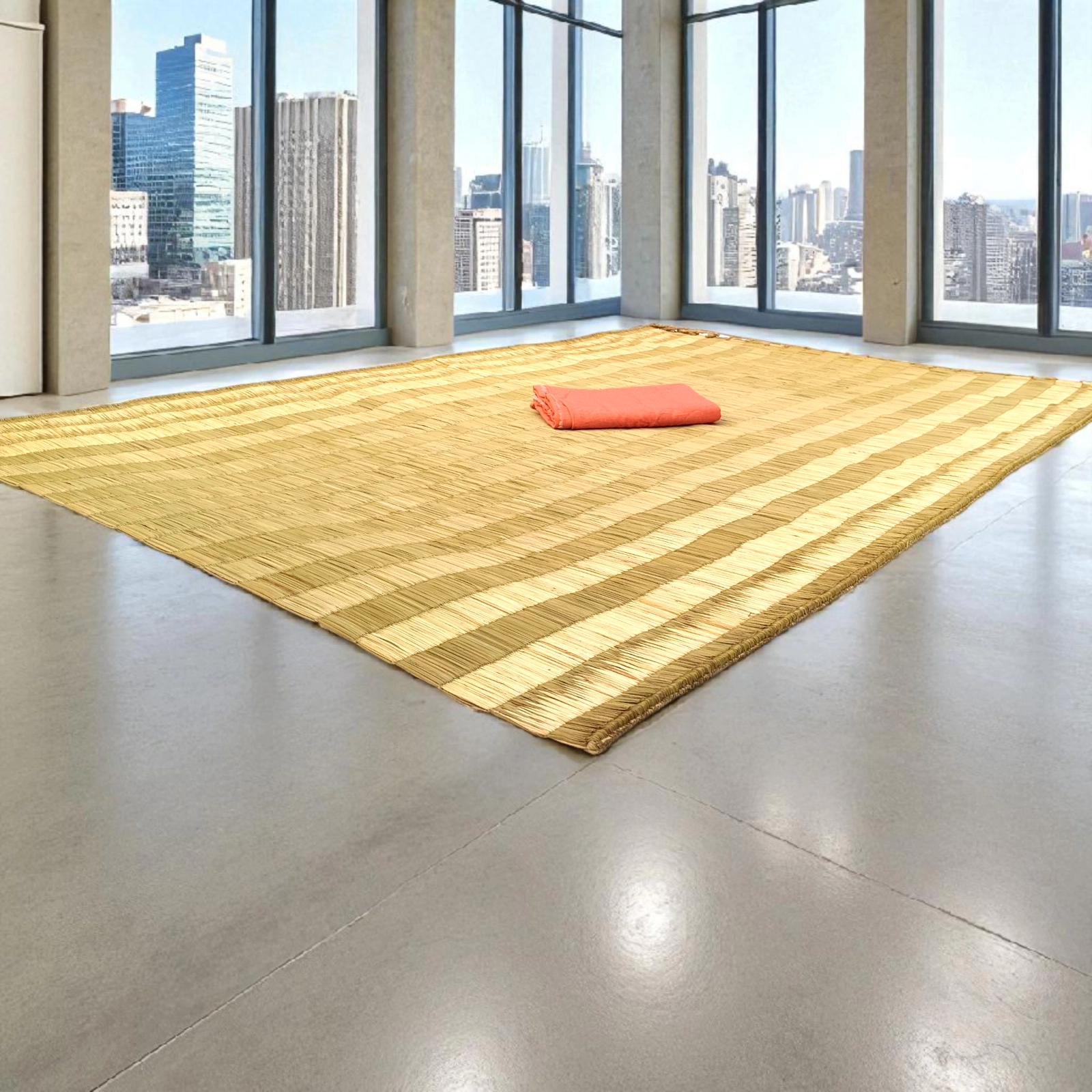 Ideal for yoga, meditation, floor seating, or relaxation, it features a cool and breathable surface that stays comfortable in every season. Each mat is carefully woven by hand, reflecting centuries of craftsmanship and sustainable living traditions.