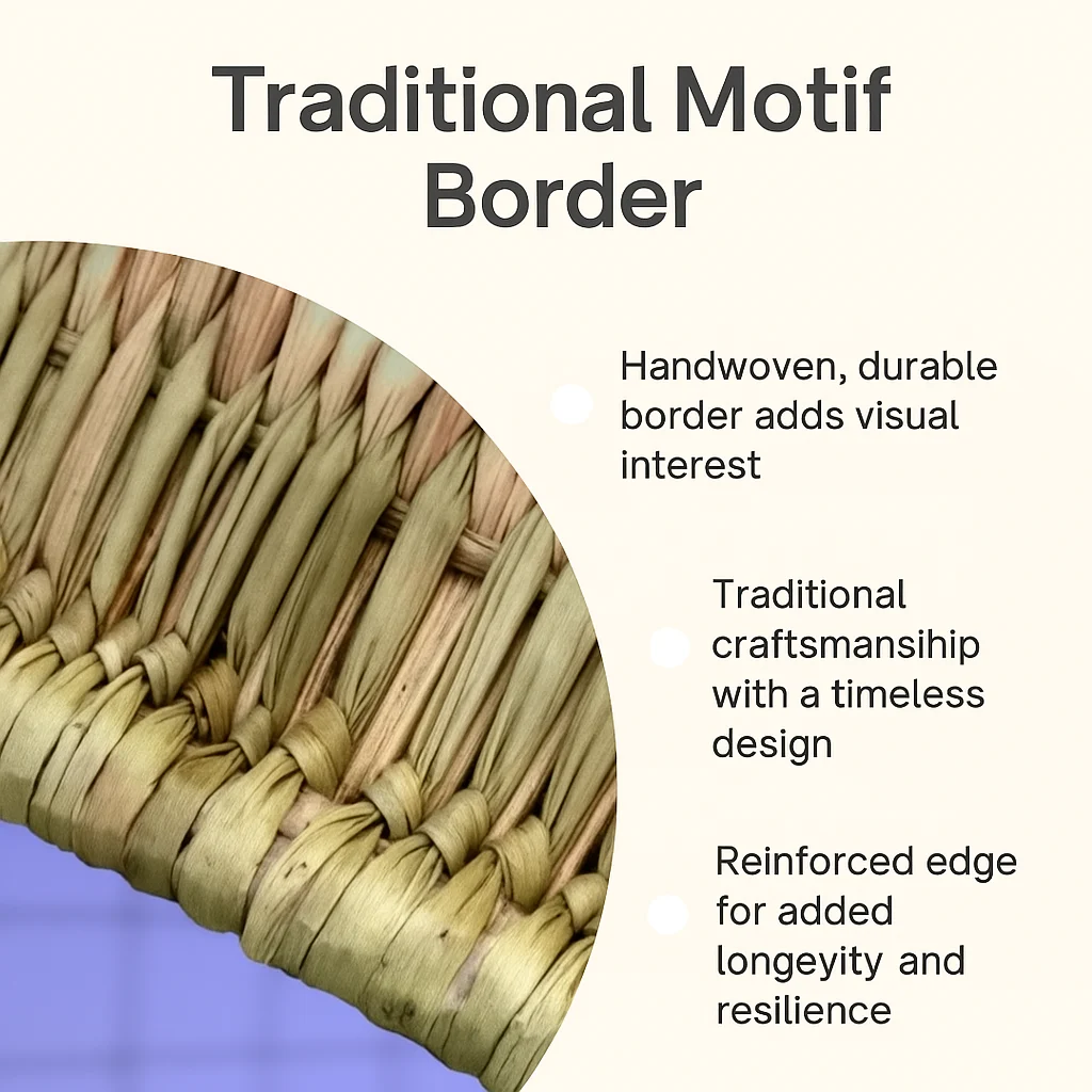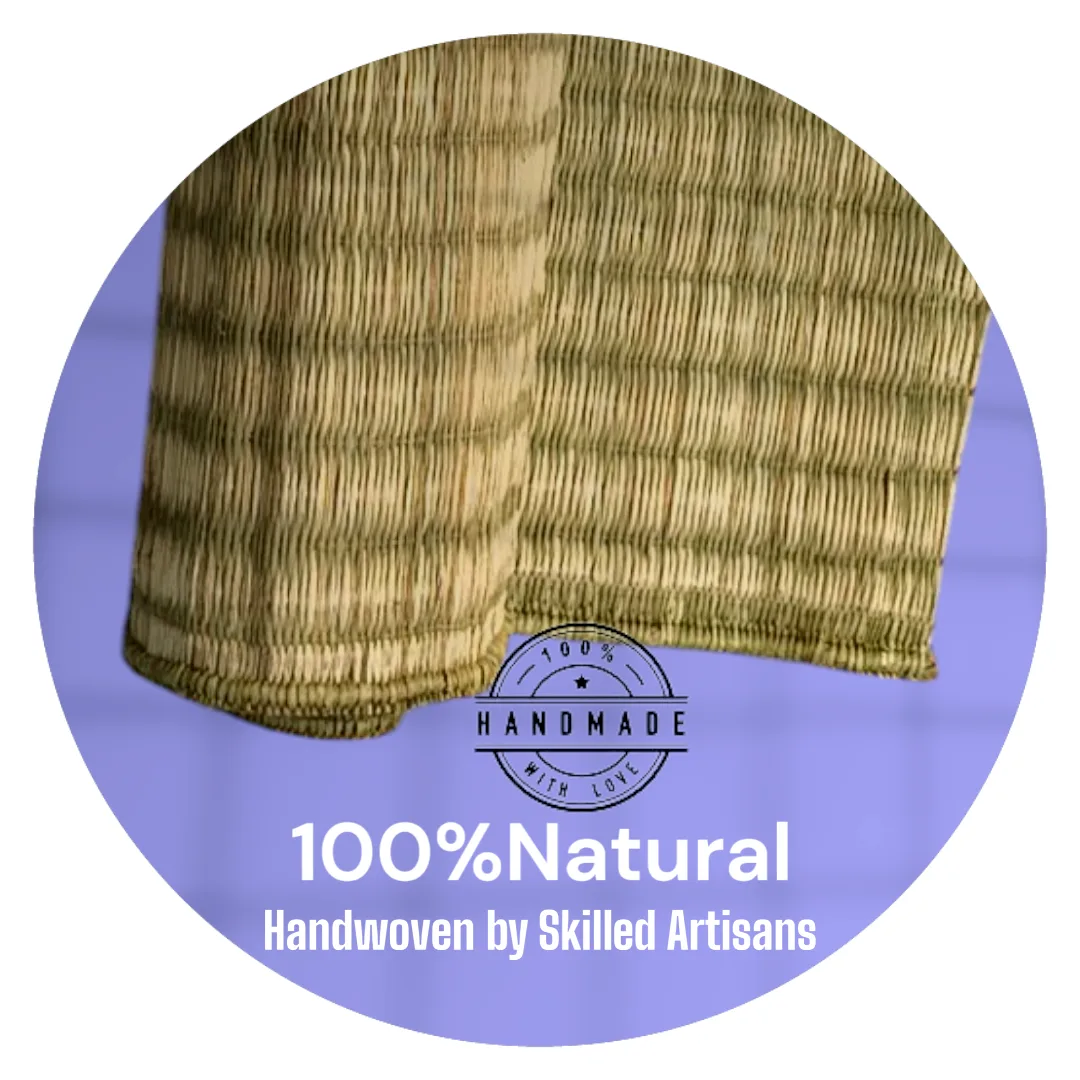 This Natural Grass Floor Mat is handwoven from sustainable Madurkathi (Rivergrass) by skilled Indian artisans. Lightweight, foldable, and eco-friendly, it’s designed for comfort and versatility—perfect for yoga, meditation, picnics, beach days, or everyday home use.